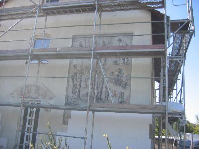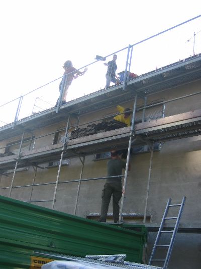 Kaum wartet man 14 Tage, schon ist das Gerüst komplett!! Auf diesem Bild ist auch zu sehen, welche Kunstwerke verloren gehen.