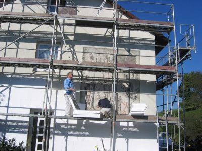 Der junge Mann, der hier im Weg sitzt, machts noch ein bißchen schön um die Fenster drum herum!!