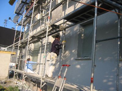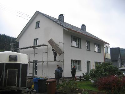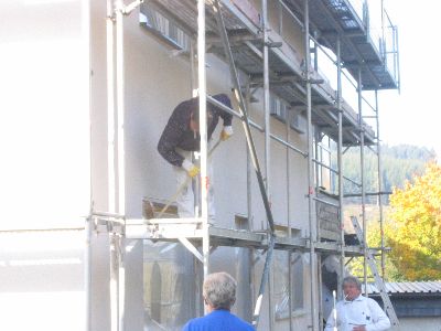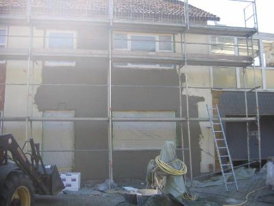 Putz an der Front fertig!! Also Gerüst umbauen, Dach wird ja breiter!!