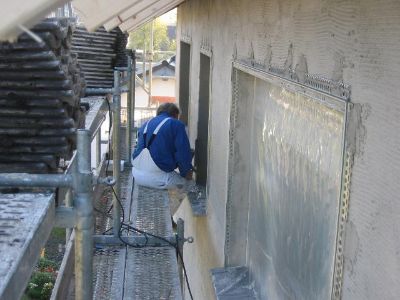 ......zwischendurch fehlstellen vom alten Putz ausgleichen......