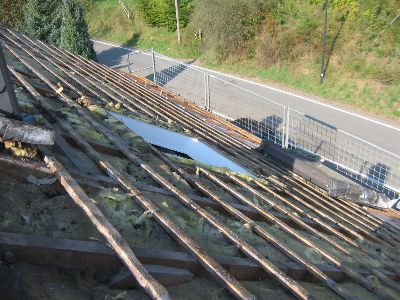 Um es etwas abzukürzen: Pfannen und Dachlatten runter, Isolierung ausbessern, Folie drauf!!