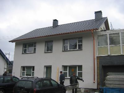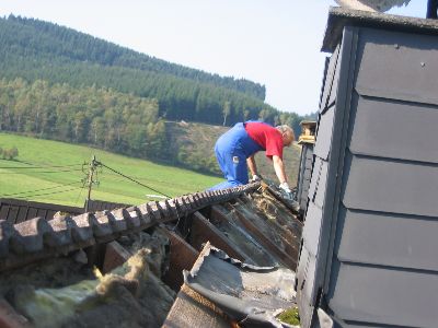 Jetzt noch ein bisschen Schiefer auf die Schlagseite und den demontierten wieder angenagelt, dann siehts doch fertig aus!! Aber dazu in Kürze mehr!!!!!