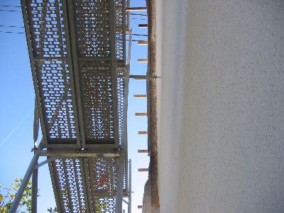 14.10.05 Jetzt haben die Jungs ne Woche Zeit für den Kratzputz!! Das ist ganz einfach: Kratzputz aufspritzen und einen Tag später mit dem Nagelbrettchen abkratzen! Und schon hat die Sache Struktur.