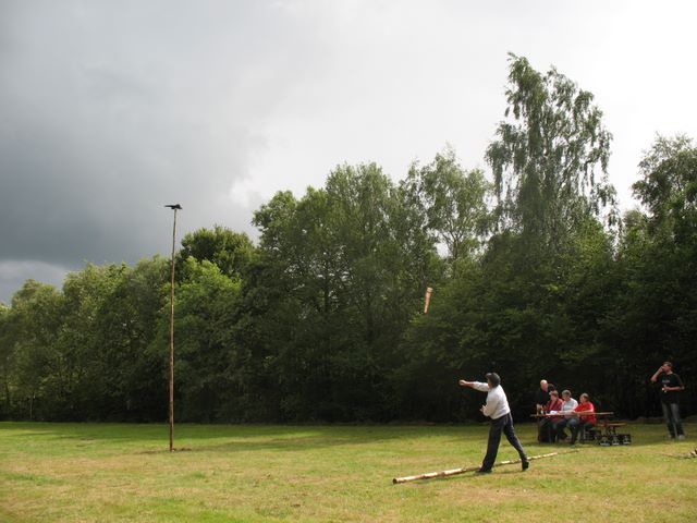 ...der gedrehte Wurf, der Knüppel geht annähernd horizontal zum Raben...