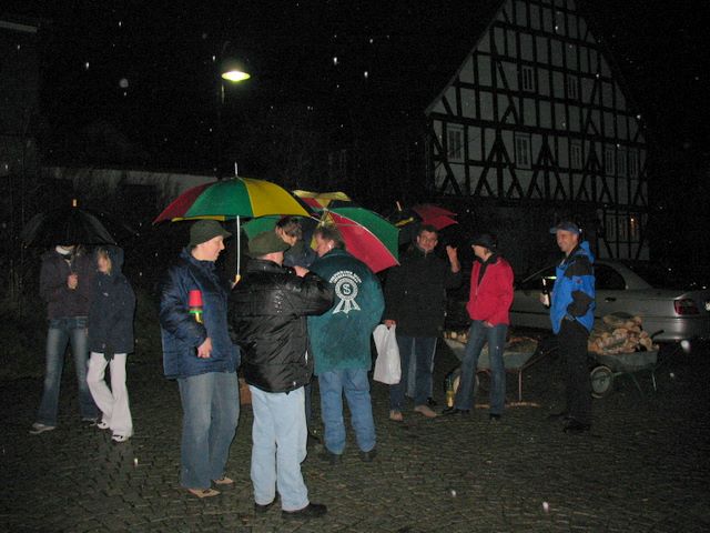 ....völlig vollgestopft zum Dorfplatz schreiten....